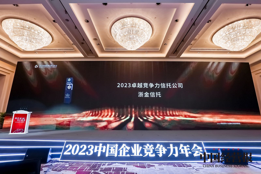 2023年12月12日,在《中国经营报》举办的“科技金融,融合发展——2023卓越竞争力金融峰会”上,“2023卓越竞争力金融机构案例精选”同期揭晓。“卓越竞争力金融系机构案例精选”从净资产、净利润、净资产利润率、总资产贡献率等指标入手,剖析中国银行业、保险业、信托业、证券业、金融租赁、互联网金融、消费金融等金融行业企业的竞争力水平。经过专业评选机构及权威媒体选拔出获奖企业榜单,浙商金汇信托股份有限公司(以下简称“浙金信托”)荣获“卓越竞争力信托公司”奖。